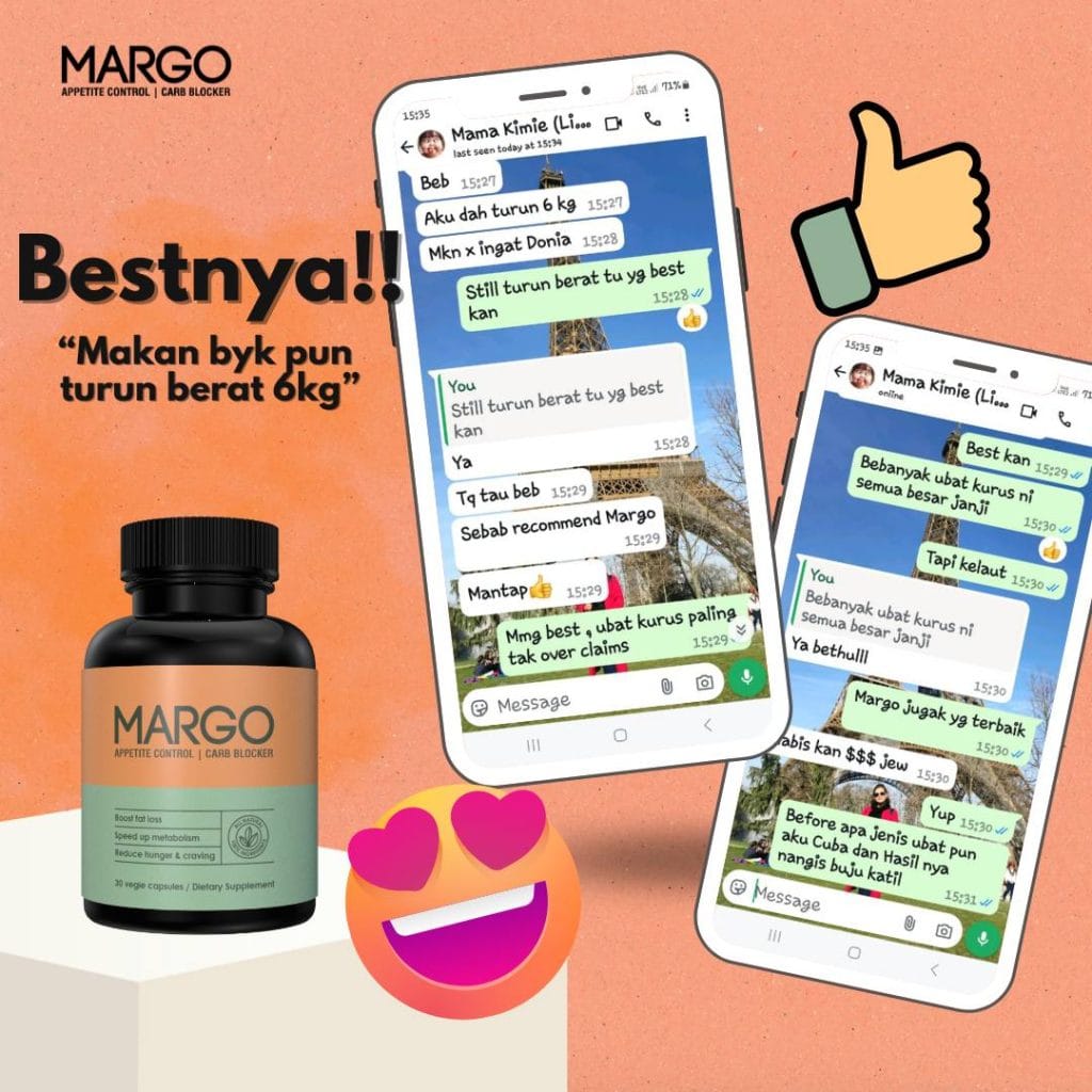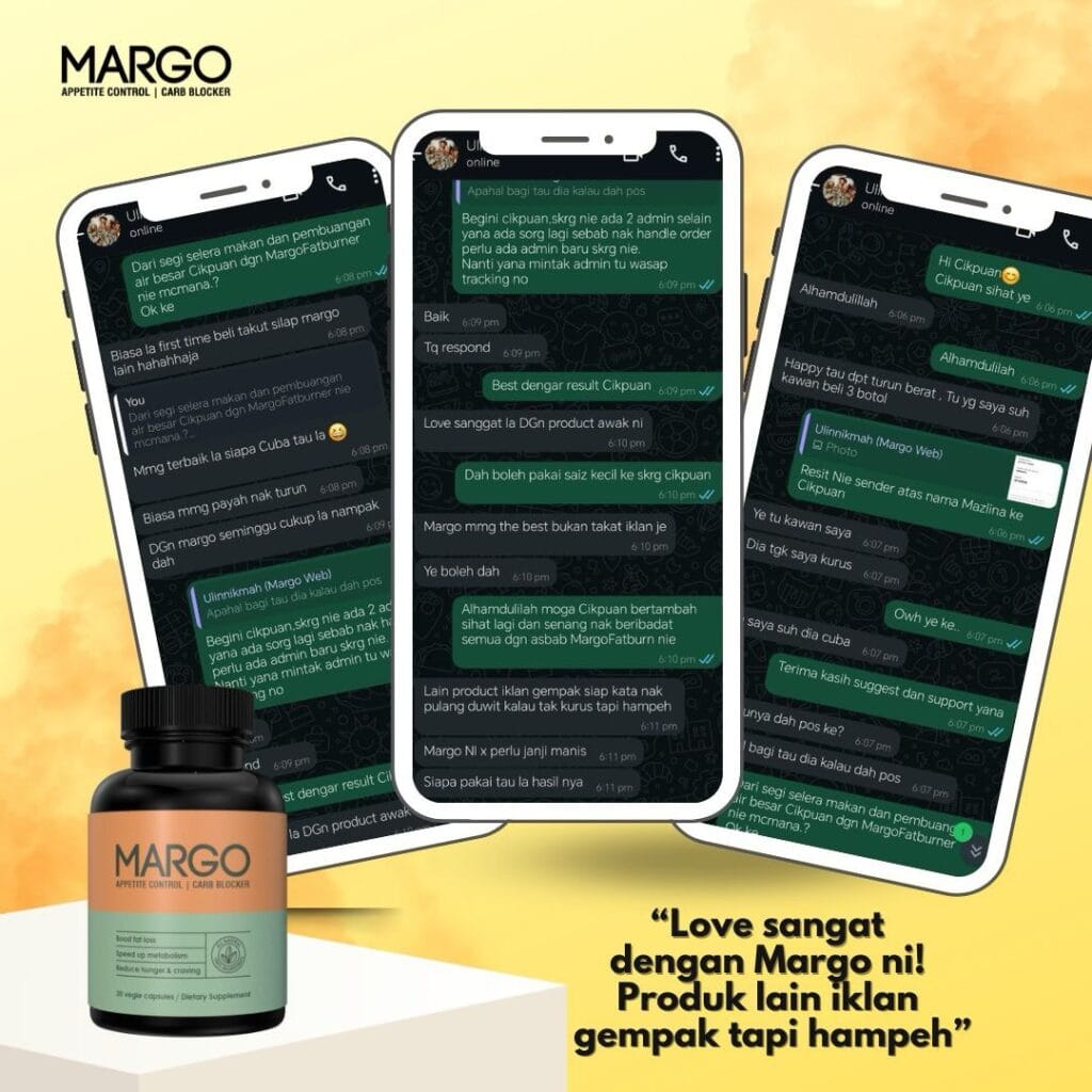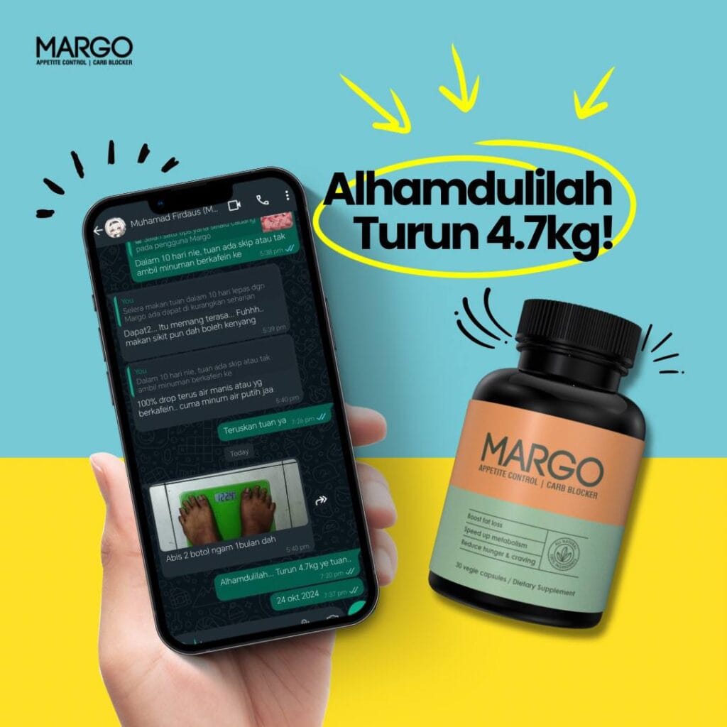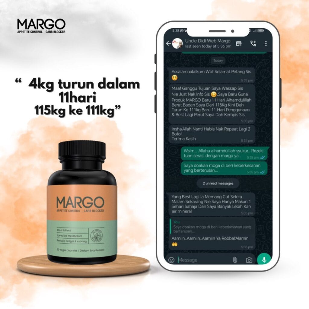 Mesti abang akak sudah penat mencuba pelbagai cara untuk menurunkan berat badan tetapi masih gagal? Dah bosan dengan perut buncit dan selera makan yang sukar dikawal? Kini abang akak tidak perlu lagi risau. Dengan MARGO FATBURN CAPS, impian untuk badan langsing dan sihat bukan lagi khayalan.